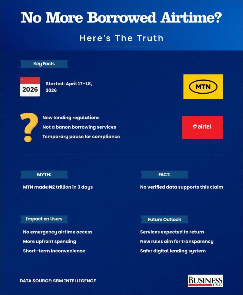 In summary, the suspension of airtime and data borrowing services by MTN and Airtel is not a response to debt recovery pressure, nor is it an attempt to extract more money from users. Instead, it is a regulatory adjustment driven by the FCCPC’s new digital lending framework.